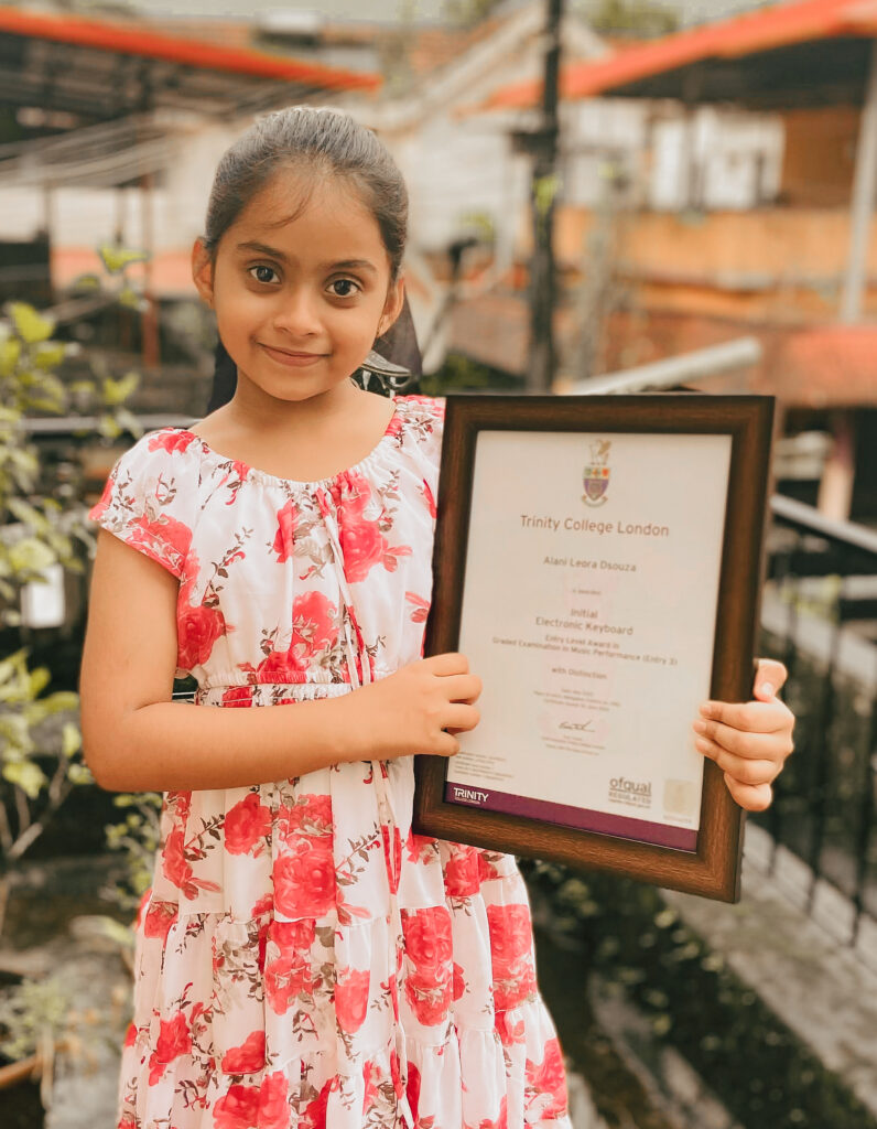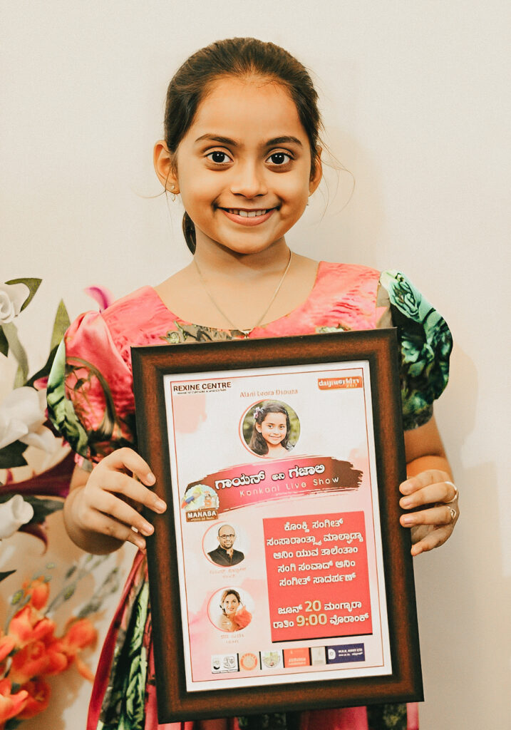 Alani is a 4th-grade student at Carmel Central School, Moodbidri, and is pursuing musical studies in piano, violin, electric keyboard, guitar, and vocals under distinguished mentors. She has received numerous accolades, including a special recognition from Mandd Sobhan for her rendition of the Konkani movie song ‘Monan Monan’.